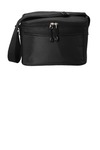 This cooler easily holds six cans as well as an ice pack and other must-haves. 420 denier honeycomb polyester, 600 denier polyester canvas Adjustable web carrying strap Heat-sealed, water-resistant lining Interior zippered mesh pocket for utensils Large front slip pocket for easy decoration access Dimensions: 6.25'h x 9'w x 7'd; Approx. 393 cubic inches Note: Bags not intended for use by children 12 and under.