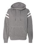 9.25 oz., 60% cotton, 40% polyester enzyme washed fleece; Yarn dyed rib trim on shoulders; Set-in sleeves & pouch pocket;